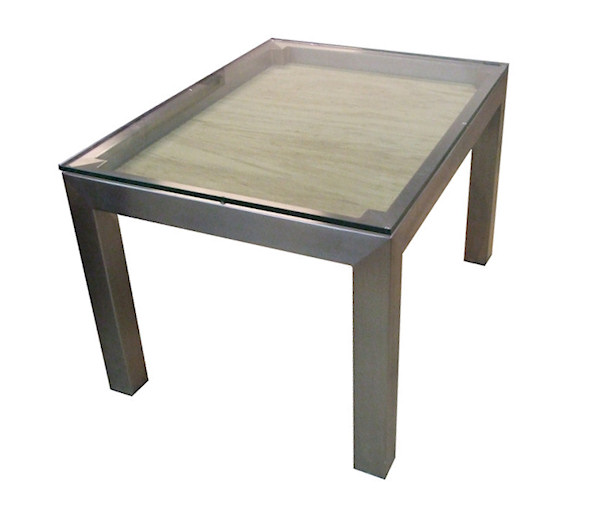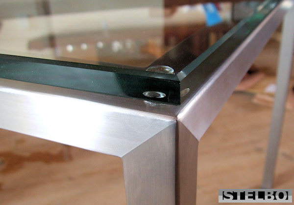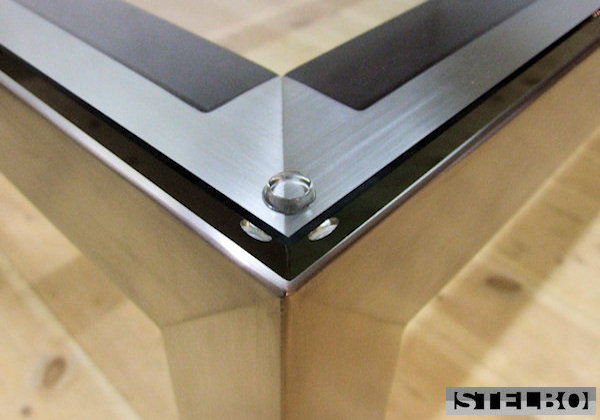 Glasbord i poleret rustfrit stål